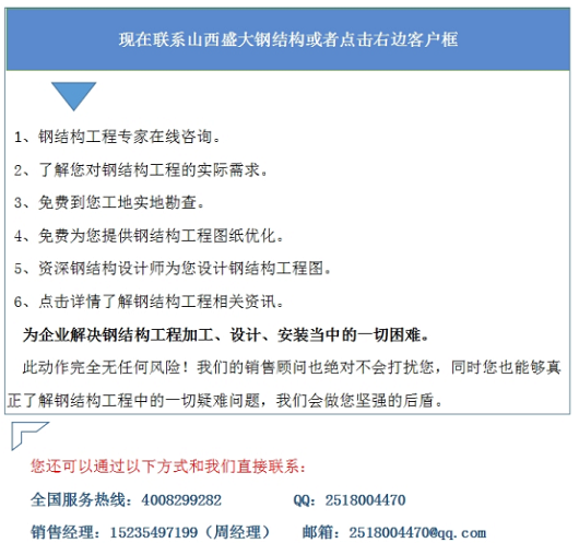 此外,根據山西鋼結構桁架的外形可以分為以下幾個種類:1、平行弦桁架,這種桁架方便布置于雙層的鋼結構,可以標準化流程化生產,但是平行弦桁架的桿力分布不均勻;2、折弦鋼結構桁架,比如拋物線形桁架梁,外形同均布荷載下簡支梁的彎矩圖,桿力分布均勻,材料使用經濟,只是其構造比較復雜一些;3、三角形鋼結構桁架,這種桁架的桿力分布更加不均勻,而且構造的布置相對困難,但是它的斜面符合屋頂的排水系統的需要。